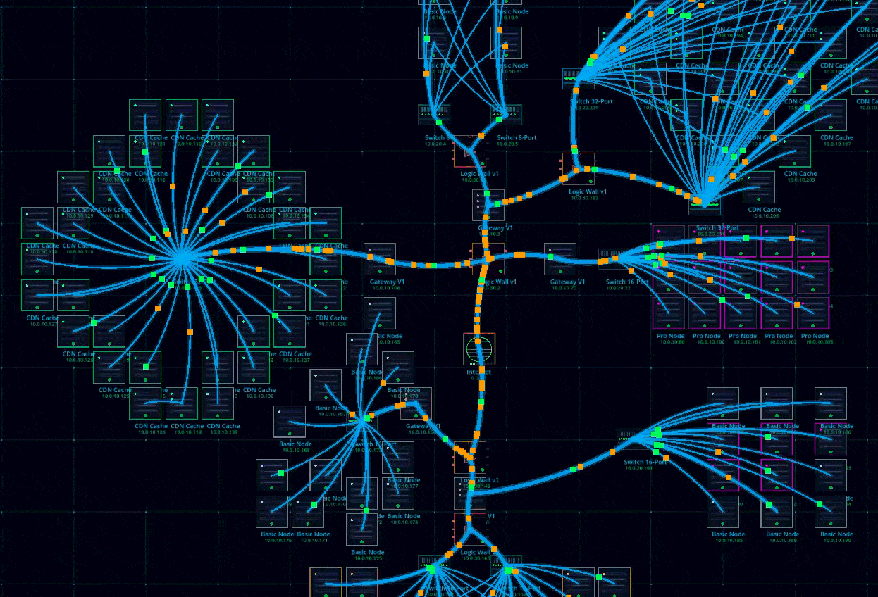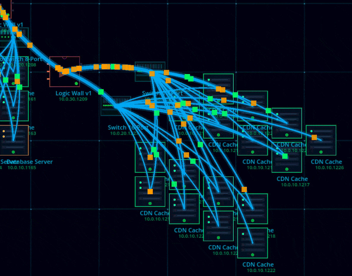 Build Your Network Place and connect servers, cooling nodes, databases, CDN caches, and logic gates. Every cable you draw is a real data path — traffic flows through the topology you design.