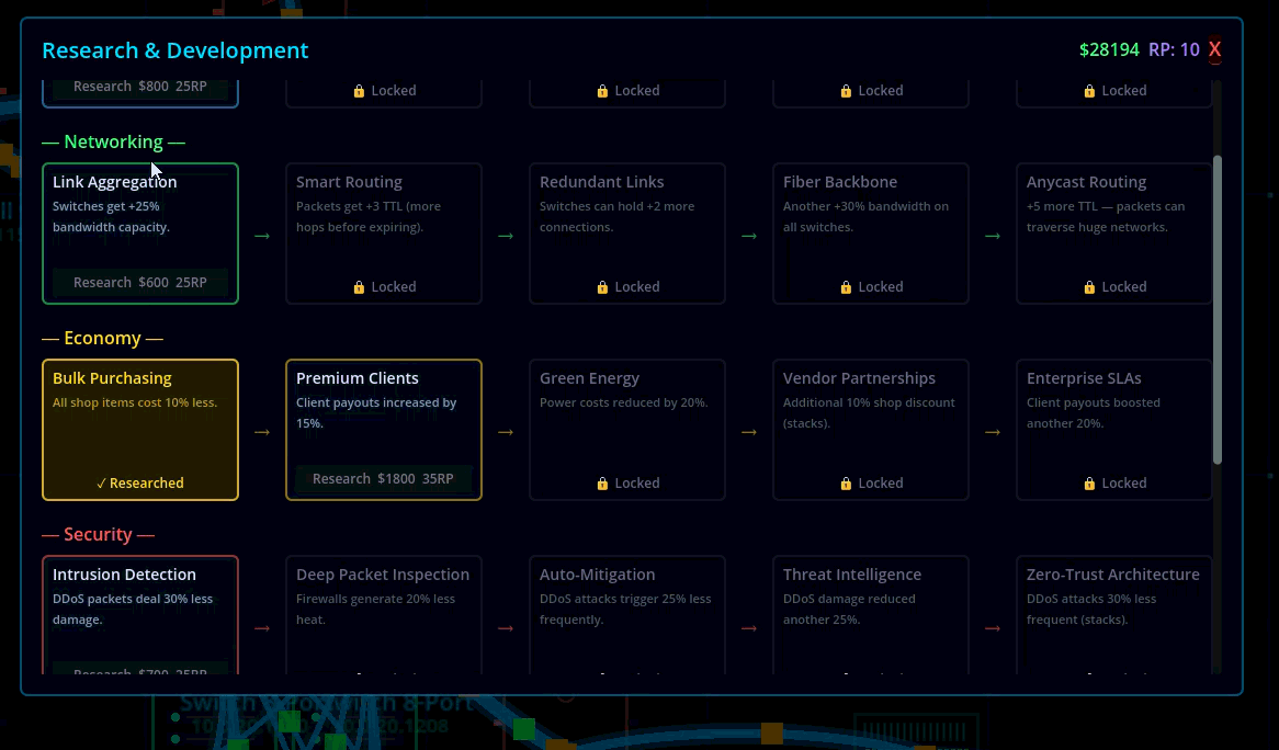 You're the engineer behind a growing content delivery network. Start with a single server, wire up your infrastructure, and scale into a traffic-routing empire — one rack at a time.